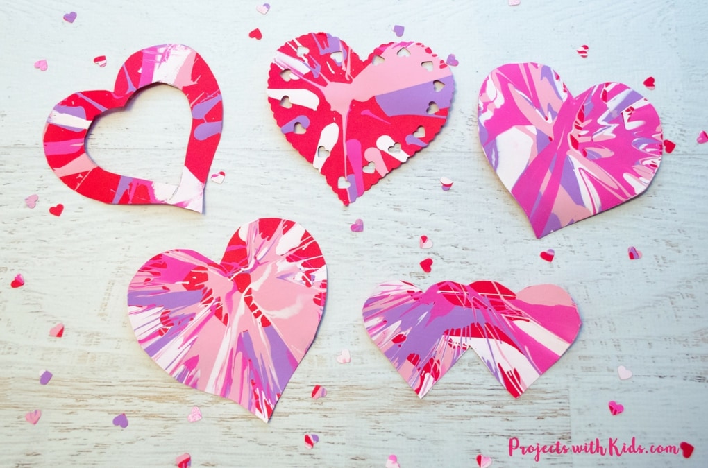 Let your students explore their creativity by making marbled heart paintings. Using shaving cream and food coloring, students can create marbled paper and then cut out heart shapes once the paper dries like the ones above from ProjectswithKids.com. This art project results in beautiful, unique designs that can be used to decorate the classroom or taken home as a keepsake.